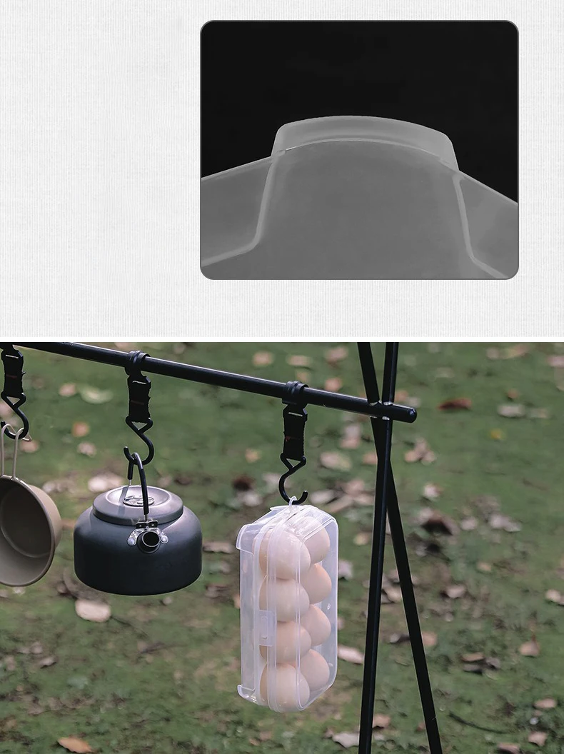 Convenient hanging hole design:Hanging hole design, coupled with a D-buckle hanging on the backpack, making this egg holder kitchen container case ideal for outdoor activities like hiking and camping. It frees up space inside the bag while keeping your eggs or other items within easy reach.